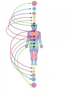 The Axis Mundi and Axis Coeli are connected by way of the Hara Line, which sits one level outside and above the seven physical chakras and forms a line from the Soul Star Chakra to the Earth Star Chakra and is anchored to the physical body through the Tan Tien. A good analogy is the wire that connects the lightening rod to the ground spike.